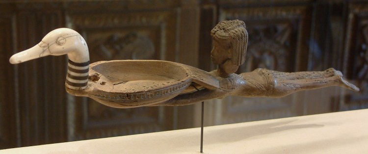 Cuiller à fard, Egypte, XIVème siècle – XIIème siècle av. J-.C. Bois de caroubier et de tamaris incrusté et peint. Paris, musée du Louvre, département des Antiquités égyptiennes.